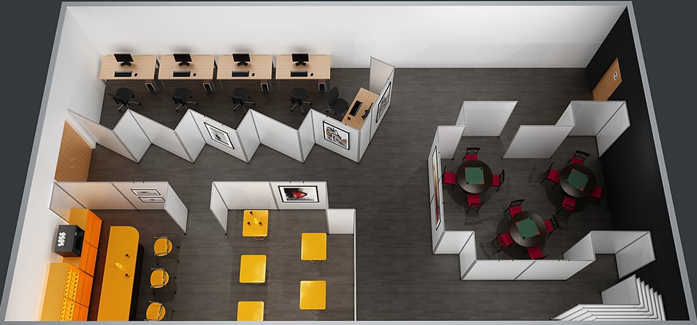 Toutes les cloisonnettes Reyem peuvent être montées sur roulettes et fabriquées sur mesure.